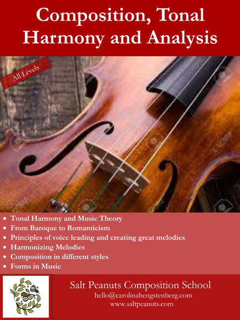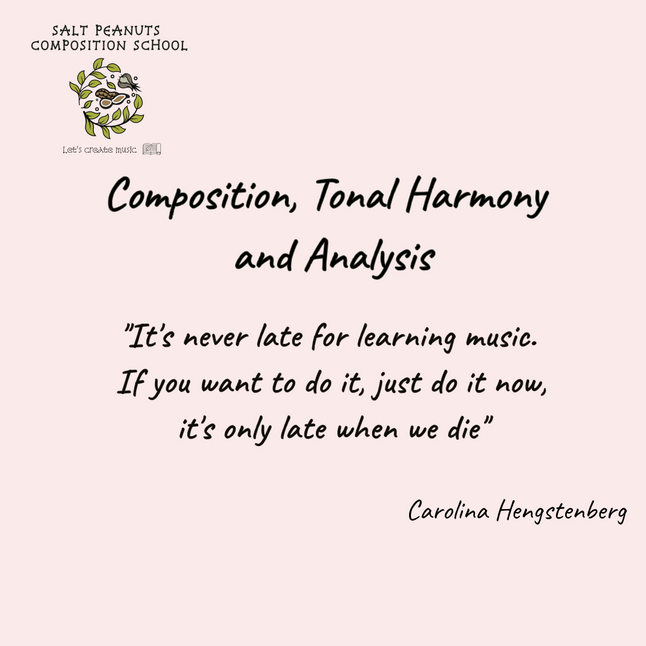 ​Salt Peanuts Composition School offers online music courses in groups of no more than 6 students per class and/or private lessons, ensuring a personalized and effective learning. My students span all levels and styles, ages and nationalities. I teach in both English and Spanish.