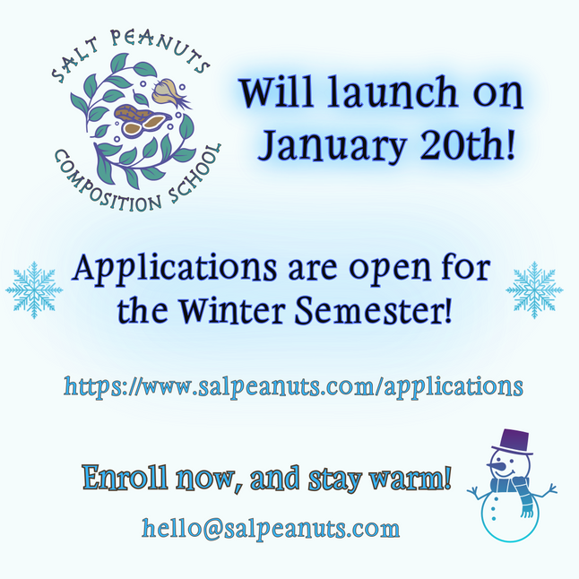 Salt Peanuts accepts applications for Levels Beginner through Advanced